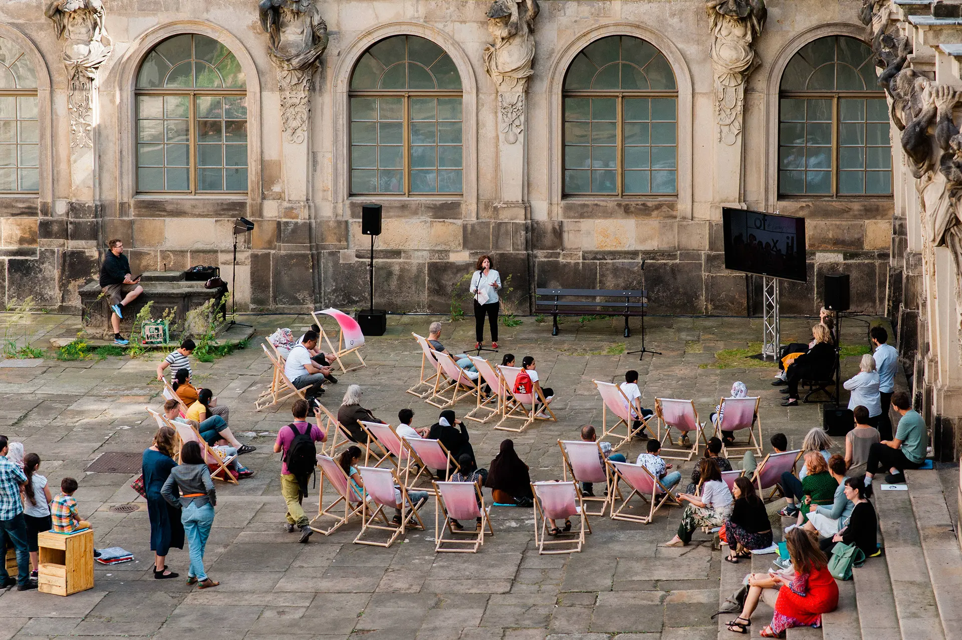 In einem dreimonatigen Erzählprojekt verbanden sich 14 Teilnehmer*innen aus der kulturdiversen Stadtcommunity Dresdens im Alter von 9 bis 12 Jahren mit dem Damaskuszimmer. Zusammen mit einer Erzählkünstlerin und einer Theaterpädagogin erhielten sie einen Einblick in die Kunst des Erzählens. Themen wie Heimat, Sehnsucht, Angst oder Freude standen dabei im Mittelpunkt.