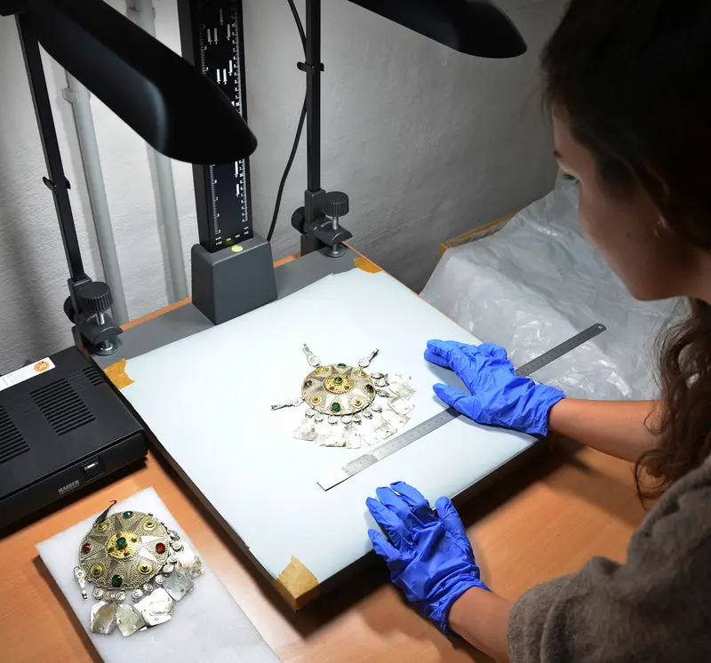 Die Restaurierungsabteilung ist für die Erhaltung der über 300.000 Sammlungsobjekte der drei sächsischen Völkerkundemuseen verantwortlich. In den Werkstatträumen in Leipzig und Dresden sind Restaurator*innen mit unterschiedlichen Spezialisierungen – so unter anderem Textil, Leder, Pflanzenfasern, Holz, Metall und Keramik – tätig.
